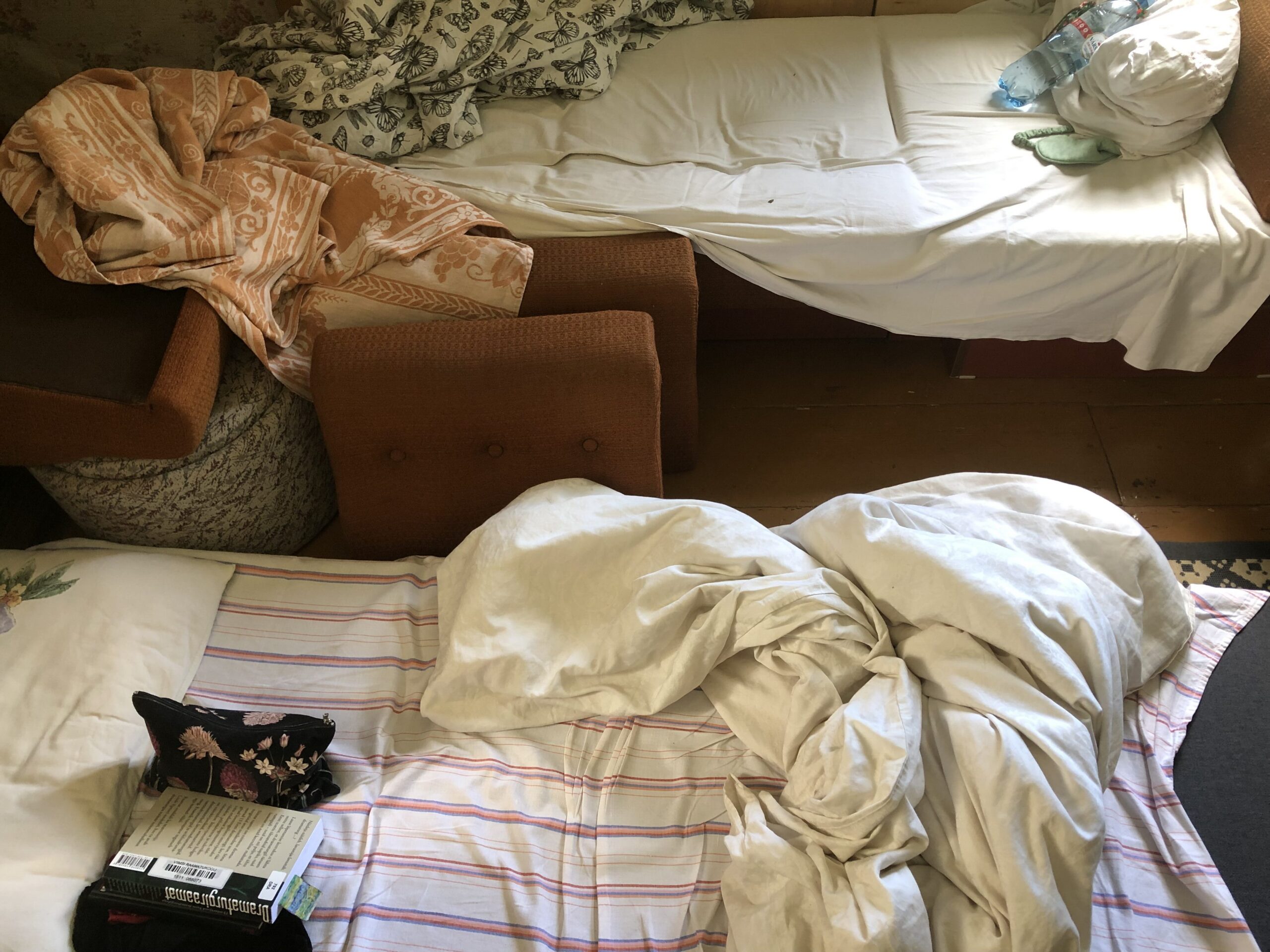 Seisan bussis ja minu ees istuvad kaks tüdrukut, kes vaatavad videot crusty’dest ripsmetest girlies start leaving mascara on for more than 12 days, ma ei näe kahjuks, kas sealt tuleb midagi veel. Pikad crusty’d ripsmed. Nagu need raagus puud, mida pika pilguga 2019. aasta sügisel rannas vaatasin. Need puud kleepusid mu pilgu külge samamoodi, nagu girlie’de ripsmed nende silmaaluste külge. Bussis ringi vaadates panen veel tähele, et kõikidel inimestel (kaasa arvatud minul) on juuksed soengust välja kasvanud. Nii palju juukseid, mis muudkui kasvavad. Juhtub, mis juhtub, juuksekarvad kasvavad ikka pikemaks, ütles Erik kunagi ühe peo lõpus maja ees taksot oodates. Tõsijutt. Ripsmed, juuksed ja puud, vohage. Ühinege peeneks kangaks, mis vett läbi ei lase ja kannataks üht magajat kanda. Aiman ähmaselt, et taoline arhitektuurne koetis on kuskil olemas, aga sellega kokku sattudes ei oskaks ma selle ilu ära tunda. Väljun bussist, märjad juuksed villasalli all, õues tibutab vihma.
