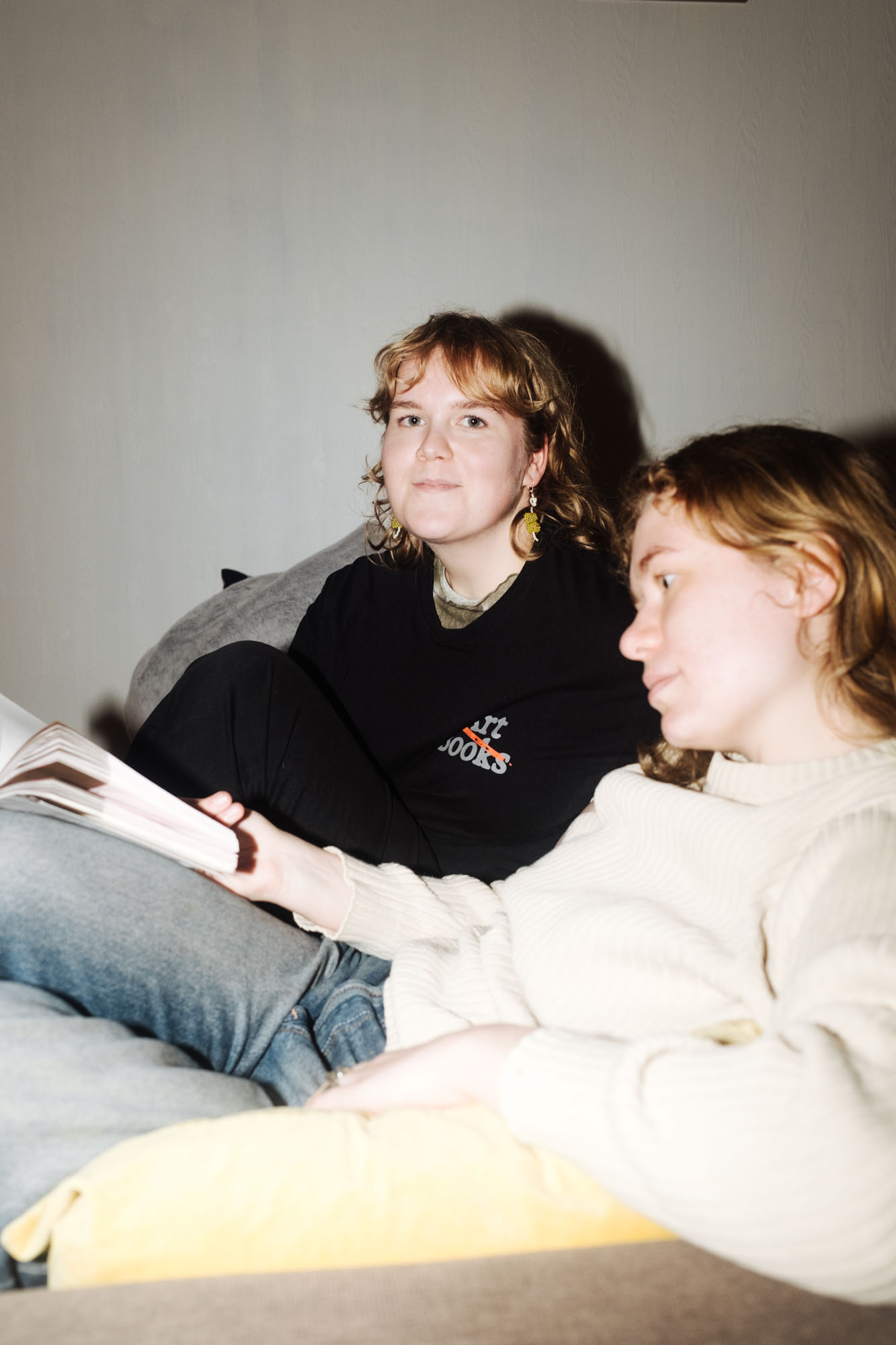 Agnes istub diivanil ja kallutab pead põlvedel lebava nähtamatu raamatu suunas, mida mõlema käega lahti hoiab.